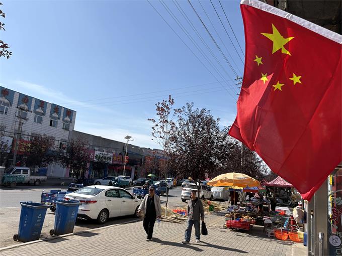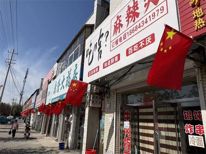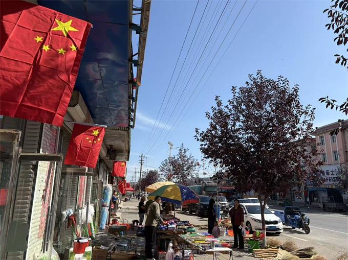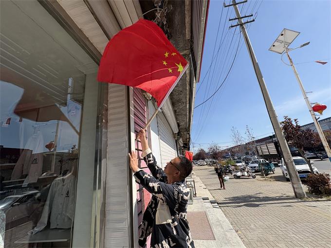 在悬挂过程中,工作人员积极向沿街商户宣传国旗悬挂礼仪,倡导大家自觉规范使用国旗,并对发现的有污渍、破损或褪色的国旗及时进行更换,切实维护国旗的尊严与形象。如今,走在营城子镇的主要街巷,一面面鲜艳的五星红旗在绿树掩映间迎风招展,与整洁的街道和喜庆的氛围相互映衬,构成一幅绚丽而庄重的节日画卷。