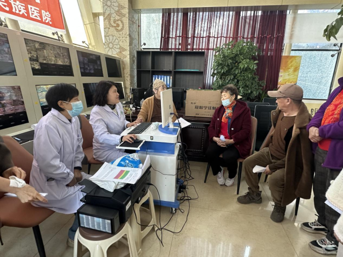 活动现场暖意融融,来自伊通满族自治县民族医院的医护团队凭借丰富经验和专业素养,为到场居民有序开展三项核心体检服务。彩超检查环节,医护人员细致探查腹部脏器健康状况;心电图检测区,通过专业设备排查心率、心律及心肌供血等潜在问题;血压测量点前,医护人员逐一对居民进行坐位血压检测,详细记录收缩压与舒张压数值,并针对血压异常者现场给出低盐饮食、规律运动等个性化调理建议。同时,医护人员还耐心解答居民关于健康养护、慢性病管理的疑问,用通俗语言普及满族医药特色养生知识,让健康理念深入人心。