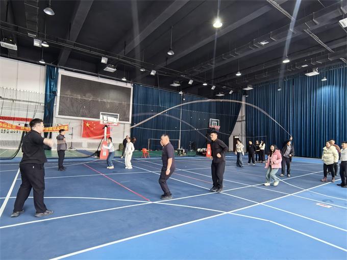“集体跳绳大挑战”里,摇绳队员节奏稳定,参赛队员同步起跳、步伐协调,绳影翻飞间,展现出乡镇干部职工步调一致、携手共进的凝聚力,每一次成功跳跃都引来现场阵阵欢呼。