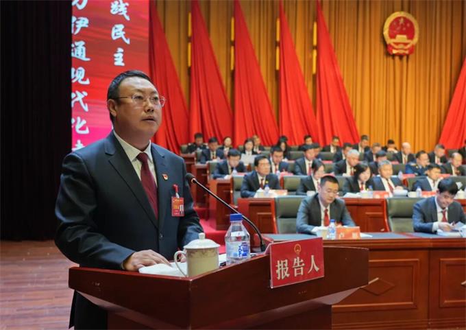 县委副书记、县长付巍代表伊通满族自治县人民政府向大会作《政府工作报告》。
